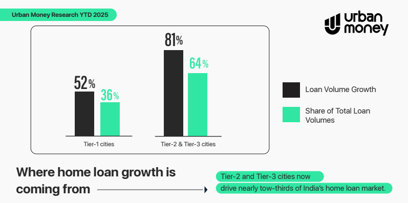 Urban Money, one of India’s largest fintech-led mortgage distribution platforms, has released the Urban Money Homebuyers Credit Pulse Report, a data-backed analysis of evolving home loan trends across India. The report points to a decisive shift in home loan demand away from core metropolitan markets, with Tier-2 and Tier-3 cities emerging as the dominant contributors to growth in 2025. As per the report, Tier-2 and Tier-3 cities recorded an 81% year-on-year growth in home loan volumes in 2025, significantly higher than the 52% growth seen in Tier-1 cities. This sharp expansion has increased the contribution of Tier-2 and Tier-3 markets to 64% of total home loan volumes in 2025, compared to 60% in 2024, highlighting a structurally broader and more distributed housing finance cycle.